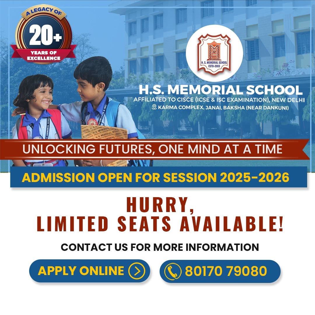 H. S. Memorial School is pleased to announce the commencement of the admission process for the academic session 2025-26. Applications are invited for admission to Nursery to Class IX and Class XI (all streams). As an institution dedicated to academic excellence and holistic development, we provide a dynamic learning environment that fosters intellectual growth, character building, and lifelong success.